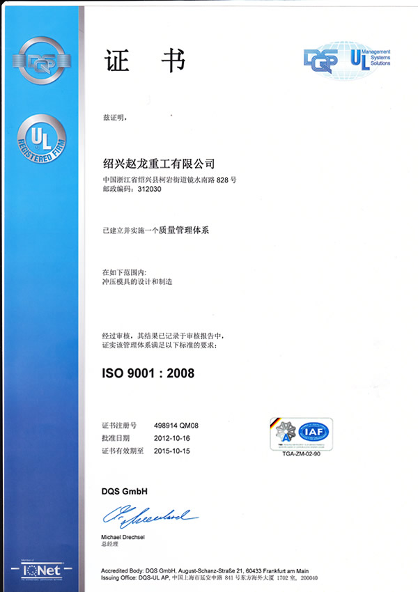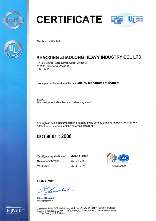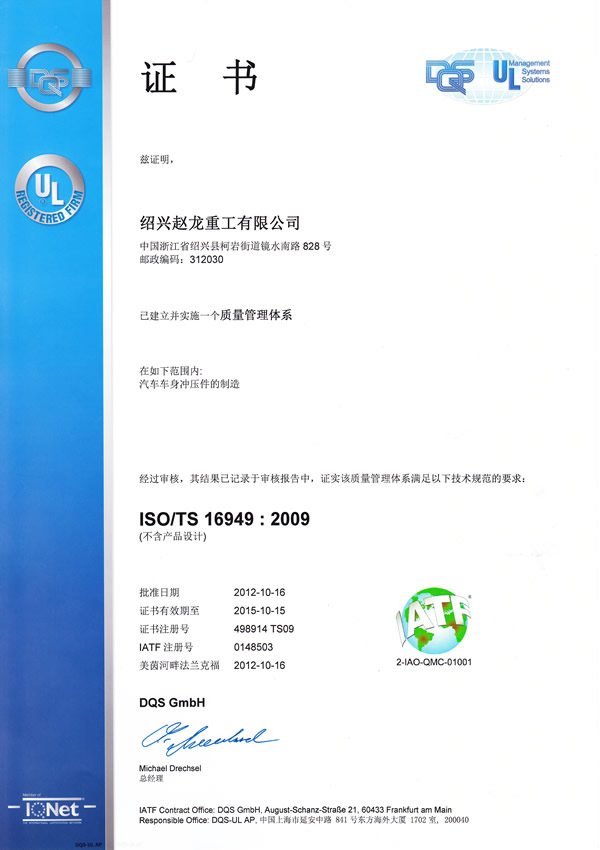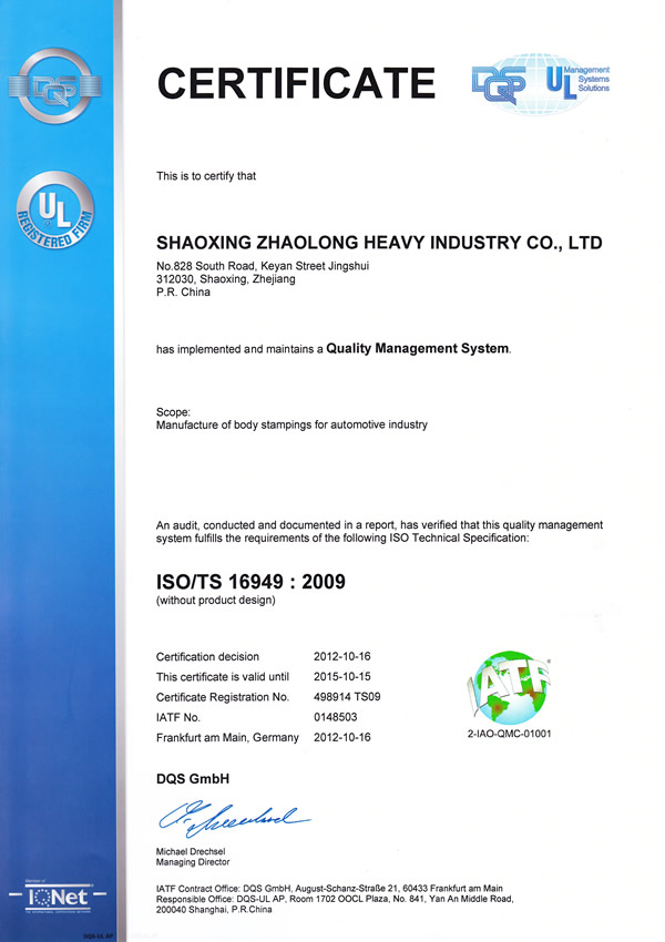 熱烈祝賀公司通過ISO/TS16949:2009和ISO9001:2008質量管理體系認證